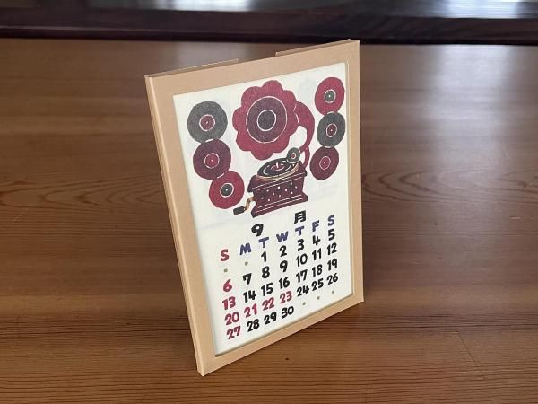 型染カレンダーを縮小印刷した卓上型のカレンダーです。